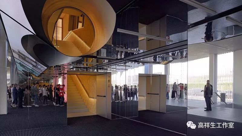 斯塔特中心室内空间全面地展示了解构主义设计中残缺、扭曲、分离、突变、无序、断裂、动势、失稳、奇艳、含糊的特点。