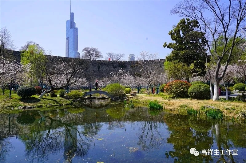 池边的太湖石增添了几分江南园林气息。紧邻城墙处,湖滩上已有高耸挺拔的水杉冒出新芽,嫩绿的,星星点点。春天水杉树既有一种刚毅向上的气质,又有一种自律和内向的性格,这种树的特性多像南京人的性格。