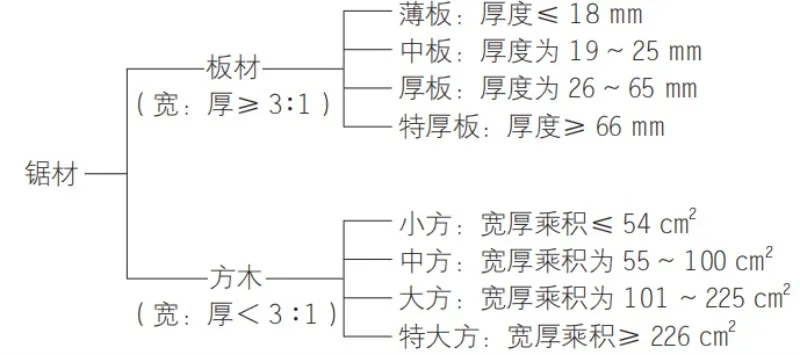 指锯成的规格料,也称板方材。凡宽度为厚度的3倍或3倍以上的木材叫板材;宽度不足厚度3 倍的叫方木。板材按厚薄尺寸不同可分为:薄板、中板、厚板、特厚板。方木按宽、厚的乘积(cm²)可分为:小方、中方、大方、特大方。