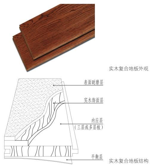 复合地板是指以不同质地的纤维板为基材,经过特定工艺压制而成的人造地面装饰板材。其内部构造包括四个层次:底层、中间层、装饰层和耐磨层。