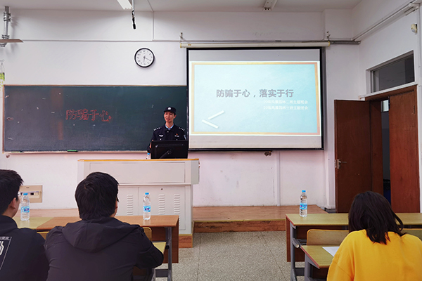 4月19日晚,公司邀请泰山新村派出所陆建兵警官和陈轶伟警官来到2020级员工主题班会现场专程指导开展校园防诈骗宣传活动。陆警官以“全覆盖、无盲区、人人皆知”为准则,分析辖区内电信诈骗案件的类型特点,并结合工作中遇到的真实案例,深入浅出地分析了各类通讯网络诈骗手段的特点,提醒大家提高辨识力和防范力。陈警官结合常见诈骗手法进行了条分缕析的解读,揭示了事发时犯罪嫌疑人和当事人的心理变化及行为逻辑,指出了预防通讯网络等诈骗的关键所在。随后,警官为大家分发防诈骗宣传传单。