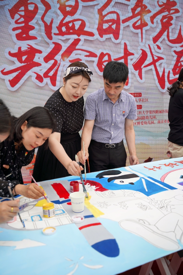 最后,党员同志们拿起画笔,共绘时代长卷。大家描绘着对党的崇敬向往,描绘着祖国的可喜变化,将自己的赤诚之心浓缩在画卷之上。整幅画卷描绘了中国共产党百年发展的壮丽篇章,展示了建党百年来的党史故事,叙述了新时代的美丽新江北。