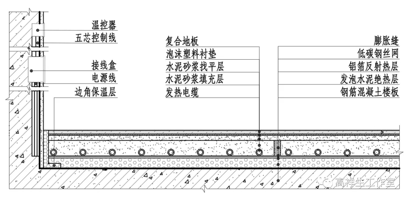 图 12-9-21 复合地板碳晶电暖地面构造节点图