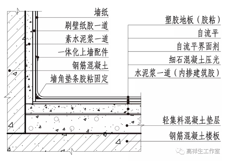 图 12-9-7 复合地板水暖地面构造节点图(发泡水泥绝热层)
