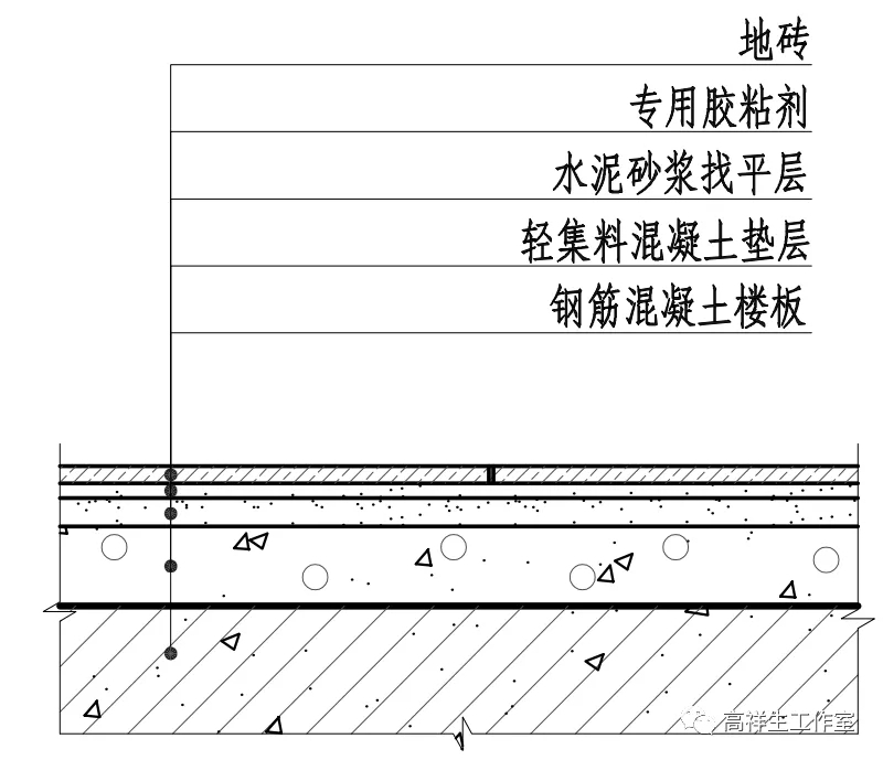 图 12-2-7 轻集料垫层地砖地面构造节点图(专用胶粘剂)