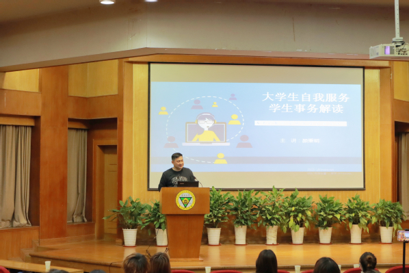 11月10日晚,伟德国际bevictor1946“校园NPC教你如何开挂老员工活”主题讲座在真知馆报告厅举行。根据疫情防控要求,本场讲座采取“线上+线下”的方式,线下参会人数120人,线上参会人数480人,全覆盖开展宣传引导工作。