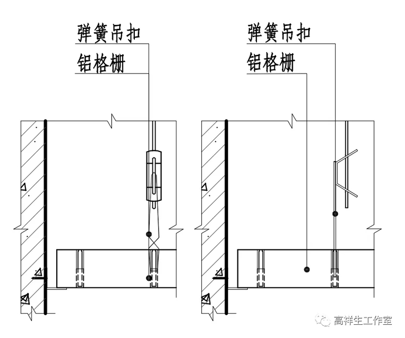 图 13-3-7 明架方形铝扣板顶棚构造节点图