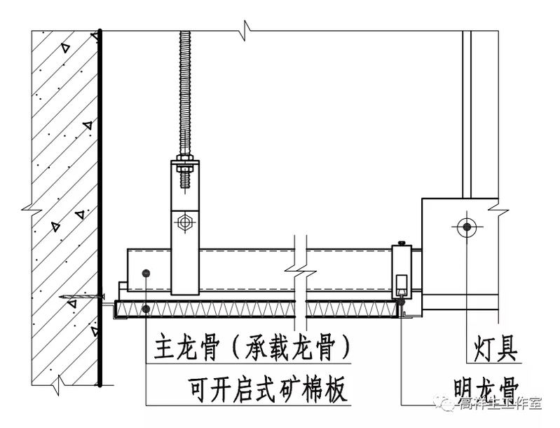 图 13-2-23 暗明龙骨结合矿棉板顶棚构造节点图(一)