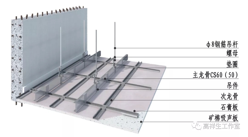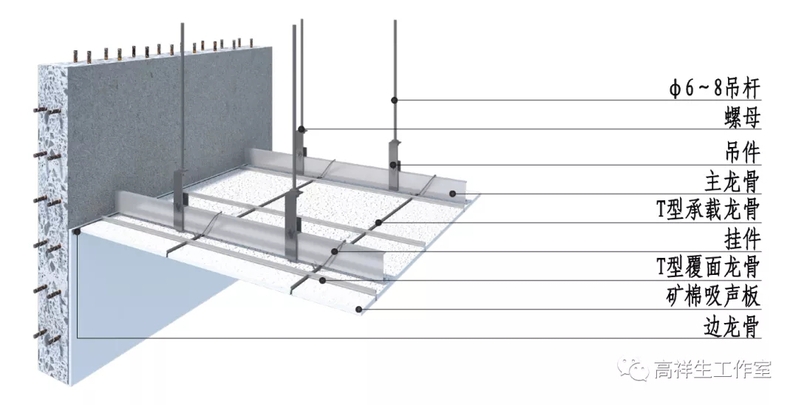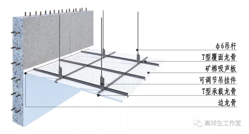 图 13-2-14 明架式矿棉板顶棚三维图方向二