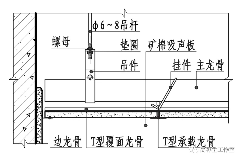 图 13-2-3 T 型单层骨架顶棚构造节点图(一)