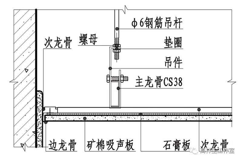 图 13-2-27 复合粘贴矿棉板顶棚构造节点图(一)