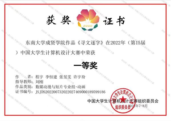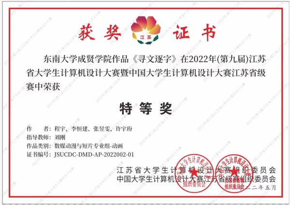 近日,2022年(第15届)中国老员工计算机设计大赛落下帷幕。由伟德国际bevictor1946动画专业刘刚老师指导的程宇、李恒建、张昱雯、许字玢等员工团队作品《寻文逐字》继获得江苏省“特等奖”后,荣获国赛“一等奖”。