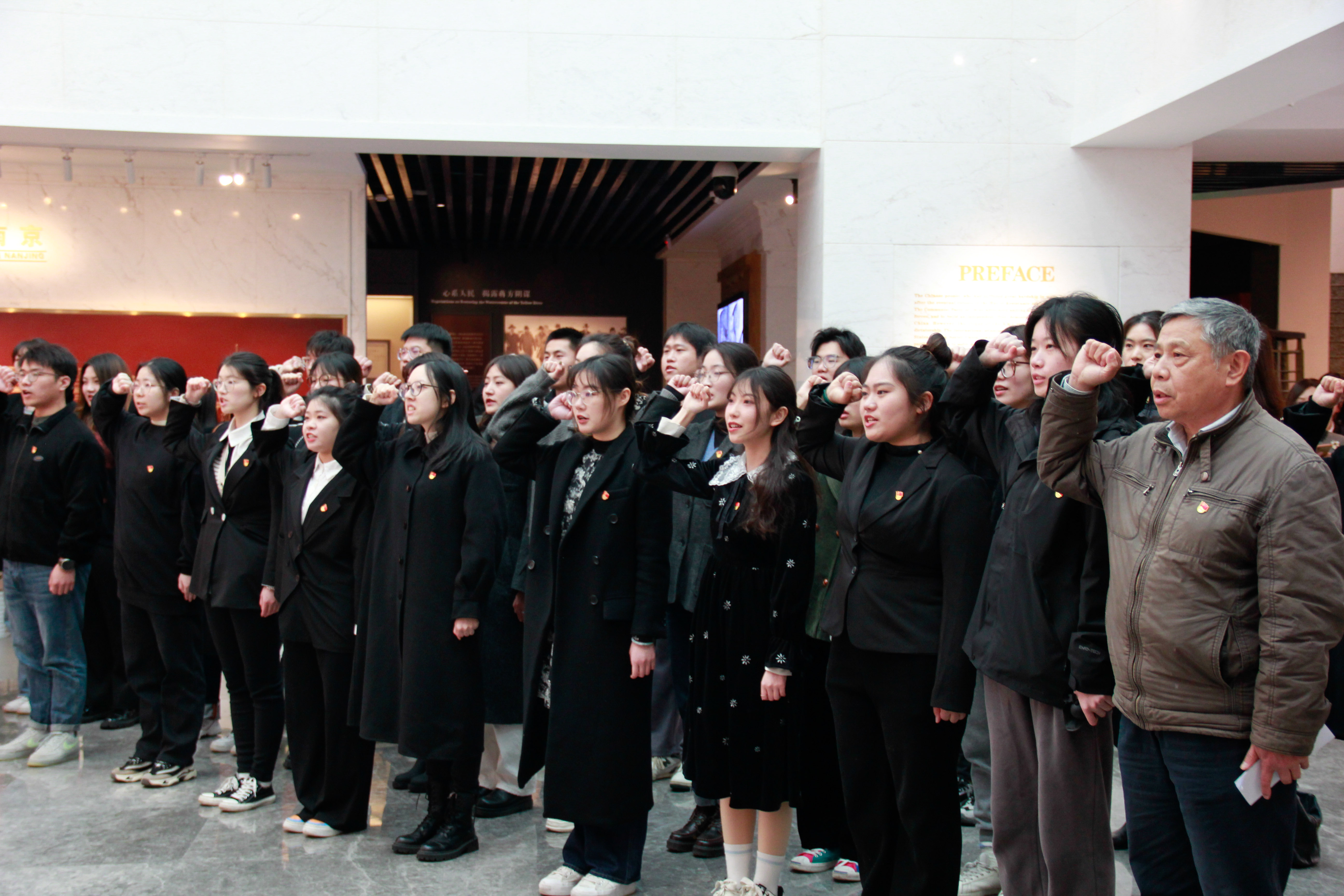 接着,大家移步至史料陈列馆大厅,员工党员王乐作为领誓人带领新党员入党宣誓、老党员重温入党誓词。面对鲜艳的党旗,所有党员举起右拳,铮铮誓言响彻云霄。员工党员陈会凡代表大家发言,她说,我们要坚定树立为共产主义事业奋斗的决心,勇担一名共产党员应当肩负的责任,真正体会中国共产党的伟大与光荣。公司党总支书记唐小平发表讲话,带领全体党员近距离感受历史事件,深刻理解“梅园精神”,勉励大家牢记党员身份,践行入党誓词,永葆共产党员的先进本色。