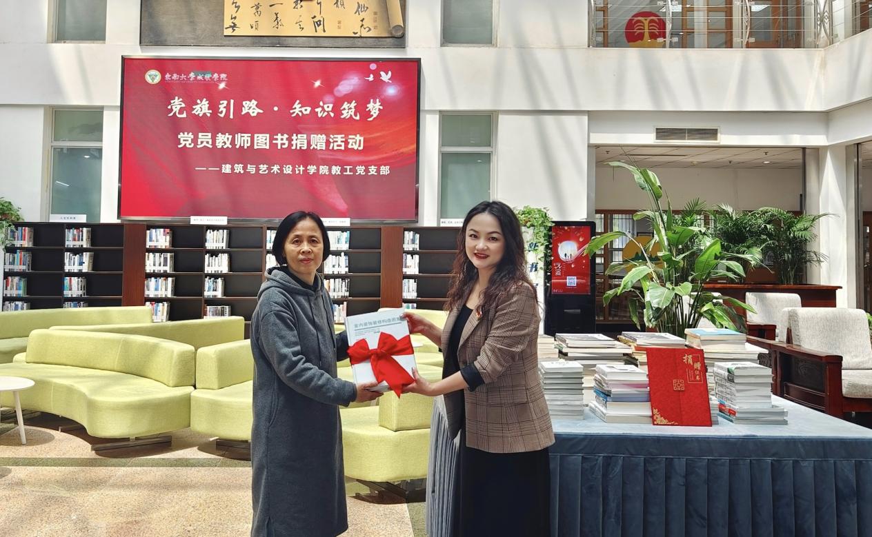 伟德国际bevictor1946教工党支部书记王桉代表支部党员教师捐赠图书,图书馆馆长封晓倩代表校图书馆接收赠书。