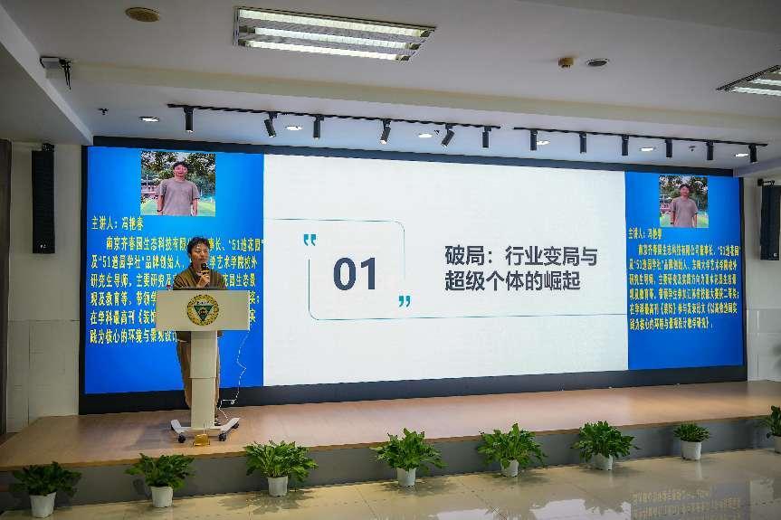 4月16日下午,由伟德国际bevictor1946主办的“空间艺术设计的新拐点——AI赋能‘超级个体’时代 ”专题讲座在求真·求美·创新工坊举行。公司邀请南京齐春园生态科技有限公司董事长冯艳春担任主讲嘉宾,伟德国际bevictor1946200余名师生参加了本次讲座,讲座由公司党总支副书记邵叶鑫主持。
