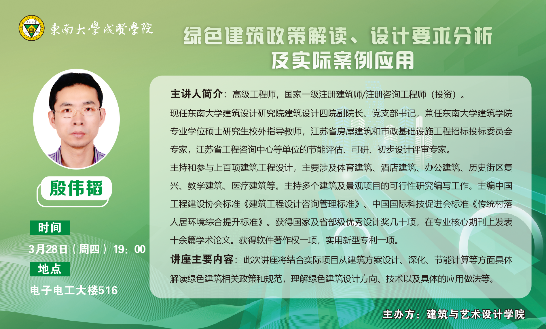 【讲座信息】绿色建筑政策解读、设计要求分析及实际案例应用